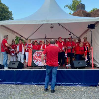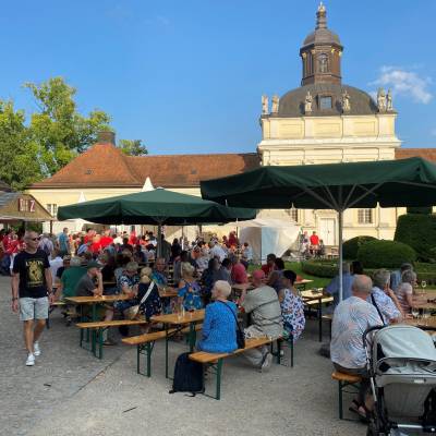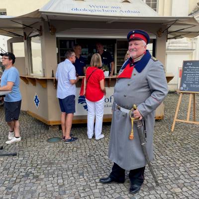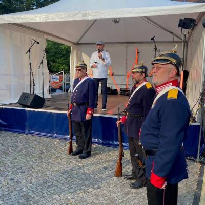 Die Stimmung war sowohl im Schloßpark als auch rund um den Luisenhain ausgelassen und fröhlich. Ich erfreute mich der vielen Gespräche in dieser lockeren Atmosphäre. Die Abgeordnete Lisa Knack (CDU) aus dem Wahlkreis 4 in Treptow-Köpenick ließ es sich auch nicht nehmen, an diesem Familienfest in meinem Wahlkreis teilzunehmen. Bevor der stellvertretende Bürgermeister von Treptow-Köpenick und Stadtrat für Jugend André Grammelsdorff (CDU) den "Winzersommer" eröffnete, marschierte tradionsgemäß die historische Köpenicker Hauptmanngarde unter dem Kommando des Hauptmanns Heiko Stang ein. Er trug anschließend einige Lieder aus dem Musical "Der Hauptmann von Köpenick" vor und die Gäste sangen begeistert mit. Nach der Eröffnungsrede von André Grammelsdorff ging es mit Sangeskunst auf der Bühne weiter. Der Unioner Oldie-Chor nahm die Bühne ein und sorgte für stimmungsvolle Unterhaltung.