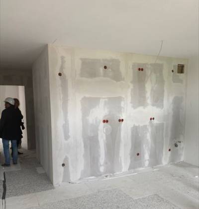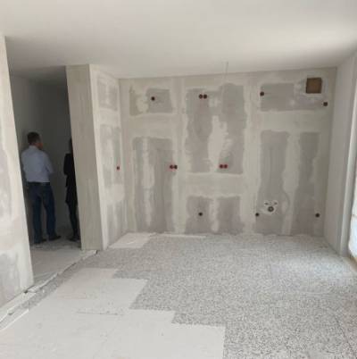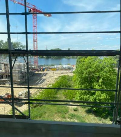 Die Gäste hatten nun die Gelegenheit ins Innere eines Wohnhauses zu gelangen und die entstehenden Wohnungen zu betrachten. Als Erstes war der Blick auf die Dahme beeindruckend und dann fiel auf, dass die Küchen direkt in den Wohnbereich integriert werden. Auch eine Vorrats- oder Abstellkammer wurde gedacht. Vielleicht macht der eine oder andere Mieter daraus ja einen begehbaren Kleiderschrank. Wer weiß, welche Ideen den Mietern bei den Grundrissen noch einfallen werden. Man darf gespannt sein.