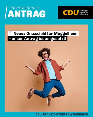 Unter der Überschrift „Ort ohne Namen – Neues Ortsteilschild "Müggelheim" am Ortseingang“ reichte die CDU-Fraktion Treptow-Köpenick am 17.09.2024 in der Bezirksverordnetenversammlung einen Antrag ein, zeitnah ein neues Ortsteilschild "Müggelheim" am Ortseingang anzubringen. Aus Köpenick kommend sollte das neue Schild kurz vor der Kirchenwiese (Müggelheimer Damm / Ludwigshöheweg) angebracht werden.
