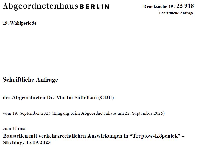 Seit dem 23. Juni 2025 besteht in der Müggelbergallee eine Baustelle, die ursprünglich nur bis 2. August 2025 dauern sollte. Nach mehreren Verlängerungen ist nun eine Freigabe bis 3. November 2025 angeordnet.