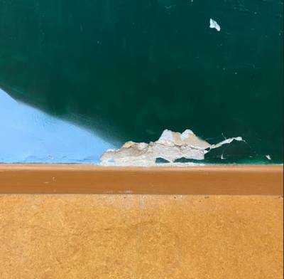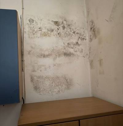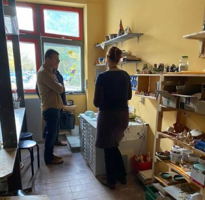 Frau Goncz führte uns durch das Haus und erklärte uns die gesamte Ausstattung und deren tägliche Nutzung durch die Kinder und Jugendlichen. Das reicht vom Computerraum bis zur Töpferwerkstatt, wo sie uns zeigte, dass inzwischen der Töpferofen aus Sicherheitsgründen nicht mehr genutzt werden darf. Im Sportraum sahen wir Stock- und Schimmelflecken, abfallenden Innenputz und eine herausfallende Steckdose. Selbstverständlich ist dieser Raum für jegliche Nutzungen gesperrt und verschlossen. An dem Sportraum angrenzend befindet sich ein Lagerraum der Fahrradwerkstatt, welcher auch von starken Stock- und Schimmelflecken befallen ist. Herr Kaufmann nahm alle Mängel auf, hat die Feuchtigkeit in den Wänden gemessen und machte auch entsprechende Fotos.