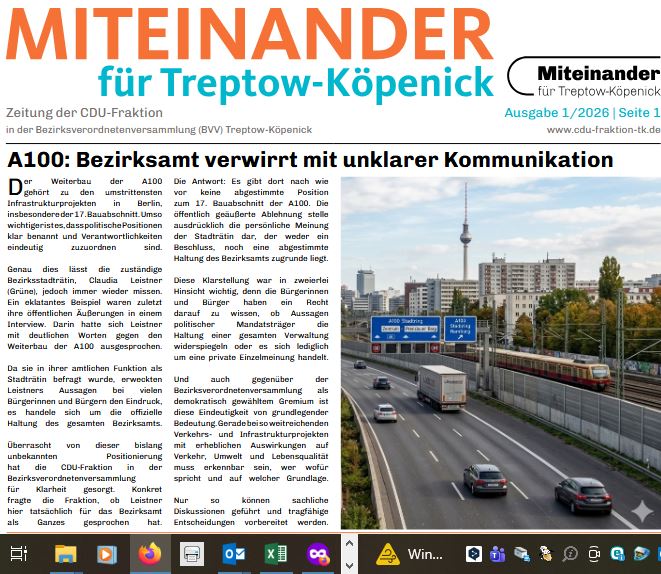 Miteinander für Treptow-Köpenick Ausgabe 1/2026