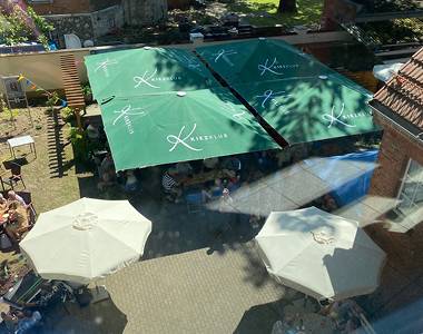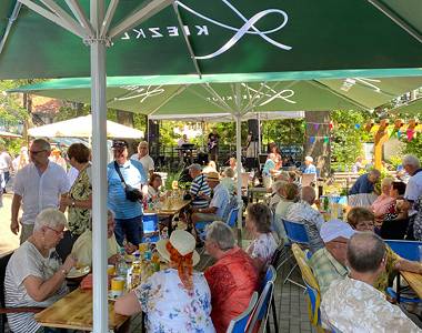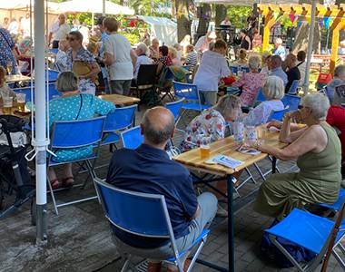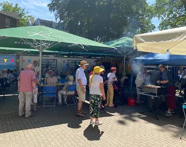 Bei der großen Sommerhitze war für ausreichend Schatten gesorgt. Auch das leibliche Wohl kam nicht zu kurz – vom Grill bis zum Kuchenstand war alles dabei.