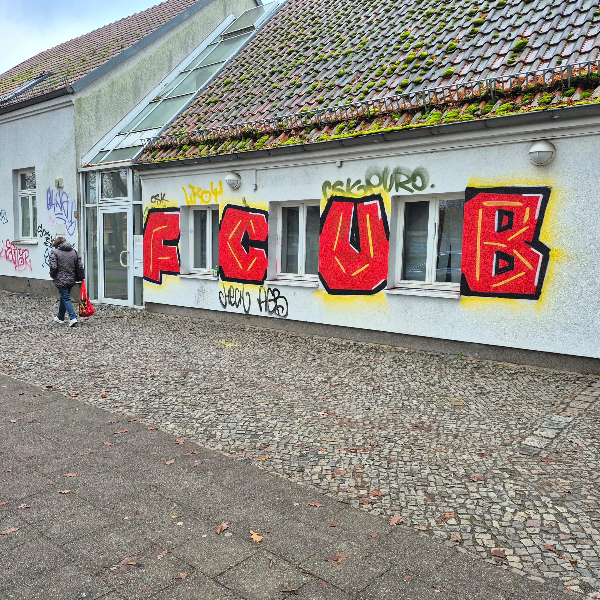 Alt-Müggelheim 17 – Meldung, Zuständigkeiten und meine Bitte an Sie. Viele Müggelheimerinnen und Müggelheimer haben mich in den letzten Wochen auf ein großflächiges, sehr auffälliges Graffiti („FCUB“) an der Fassade Alt-Müggelheim 17 hingewiesen – direkt am Dorfanger und damit an einer besonders sichtbaren Stelle.